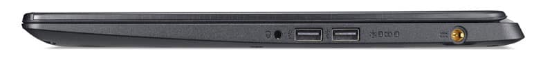 Acer a pu inclure tous les ports importants sur l’ordinateur portable plat de presque 18 mm. A droite, il y a deux prises USB 2.0 et la connexion pour l’oreillette. Sur la gauche, il y a beaucoup plus de connexions.