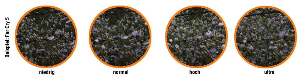 Voici des exemples en résolution Full HD avec différents niveaux de détail pour Far Cry 5 :