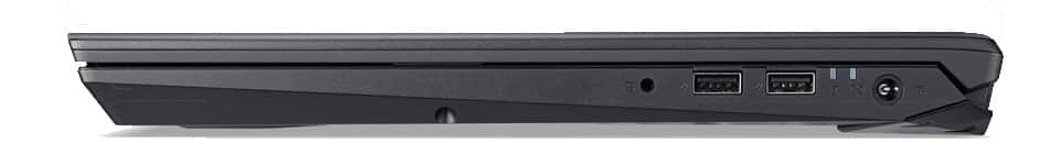 Acer a pu inclure toutes les connexions importantes sur le Nitro 5. A droite, vous trouverez deux prises USB compatibles avec le standard USB 2.0 à côté de la connexion pour le bloc d’alimentation. Sur cette page, vous trouverez également la prise pour le casque d’écoute.