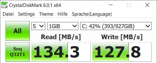 Acer a installé un disque dur avec 1000 Go de mémoire fixe. C’est relativement rapide pour un entraînement mécanique, mais il n’approche en aucune façon les taux de transfert d’un module SSD ou M.2. Avec 1 To, le disque dur offre suffisamment d’espace de stockage. Vous devriez commander un module M.2 immédiatement, car démarrer et recharger des programmes est une éternité avec le disque dur. Un module M.2 SSD est jusqu’à 5 fois plus rapide qu’un disque dur. Vous pouvez le sentir clairement. Un module M.2 approprié de 240 Go de Kingston, par exemple, coûte actuellement environ 33 euros dans notre boutique*. Pour 512 Go, vous devez investir environ 120 euros.