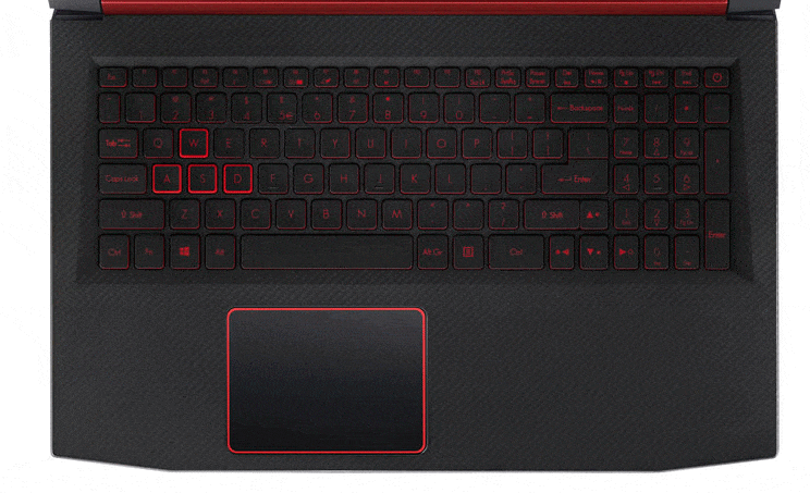 Pour le clavier, Acer utilise une disposition normale QWERTZ avec un clavier numérique séparé. Les touches ont une course perceptible sans développement de bruit. Un rétroéclairage peut être allumé si nécessaire. Les quatre touches de jeu (WASD), qui sont utilisées dans de nombreux jeux pour contrôler le personnage, ont une bordure rouge.